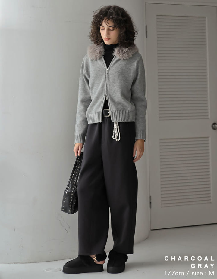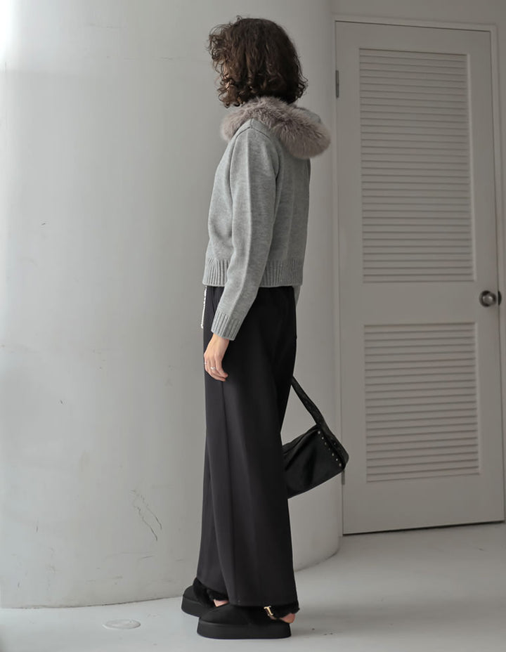 柔らかく上品な風合いのニット素材に、ボリュームのあるファーをあしらい、カジュアルながらも大人っぽい印象に仕上げました。