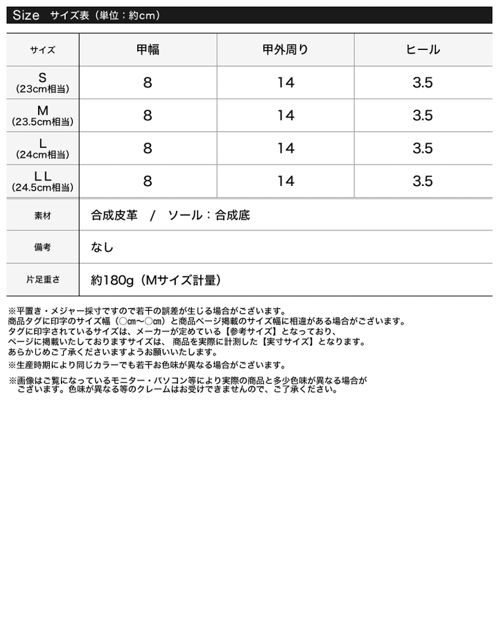 | サイズ | 甲幅 | 甲外周り | ヒール |
