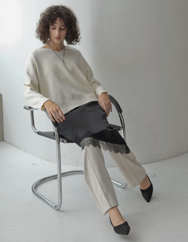 絶妙な起毛感のある素材を使用し、コーディネートにエレガントなムードをプラス。