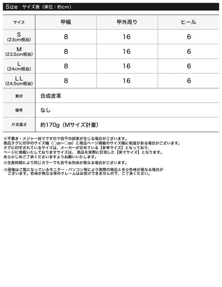 | サイズ | 甲幅 | 甲外周り | ヒール |