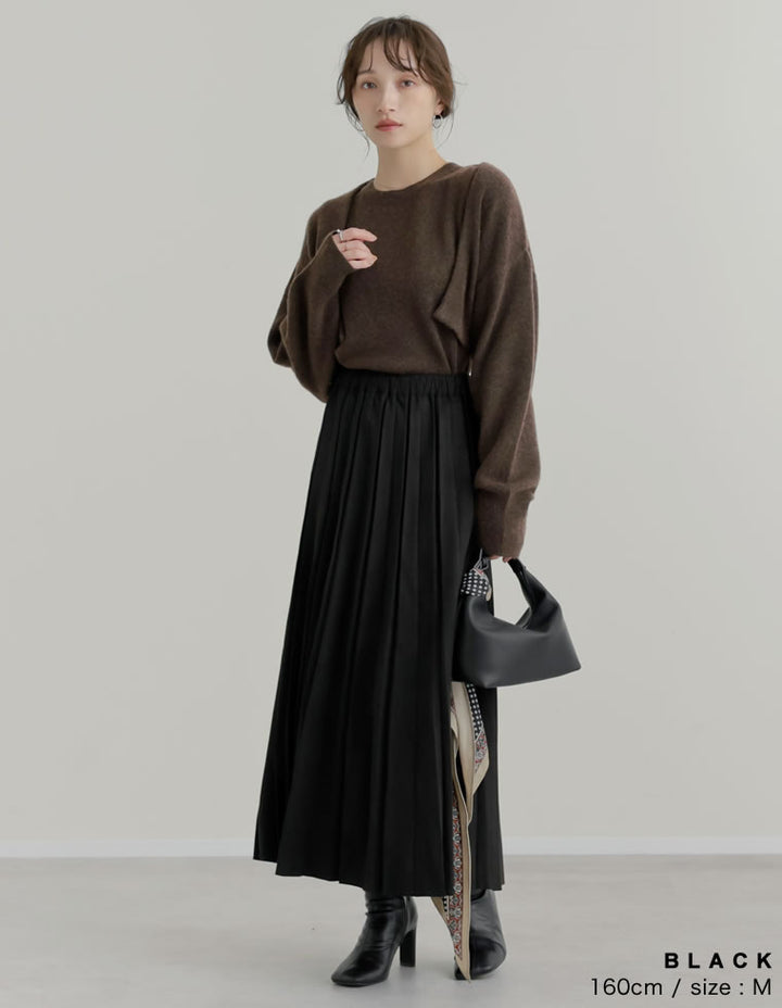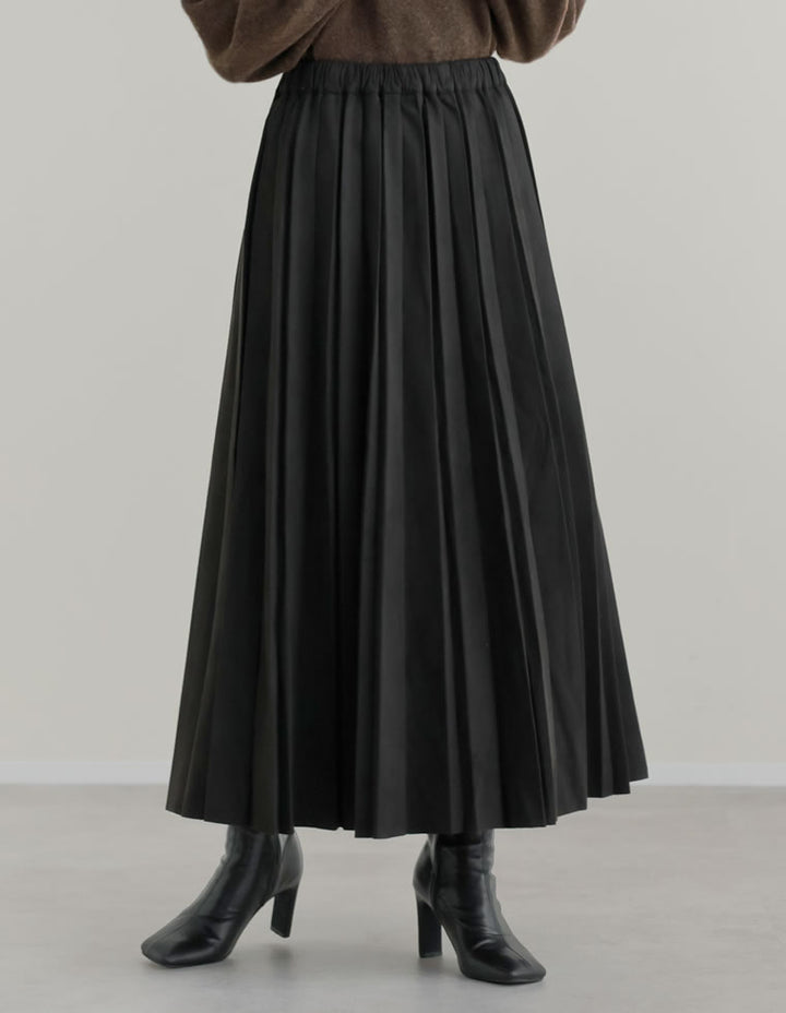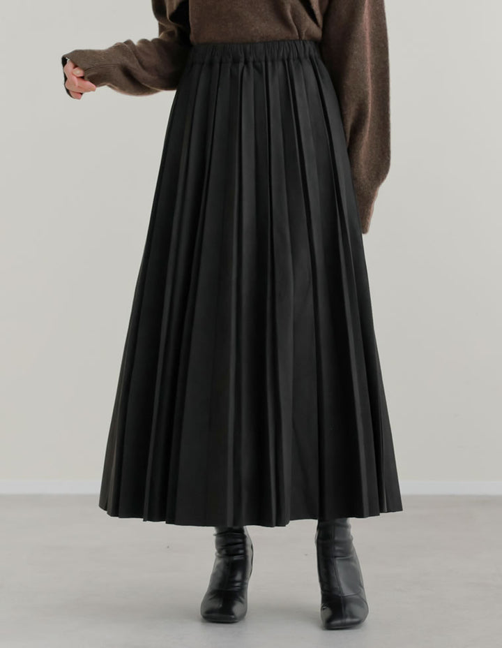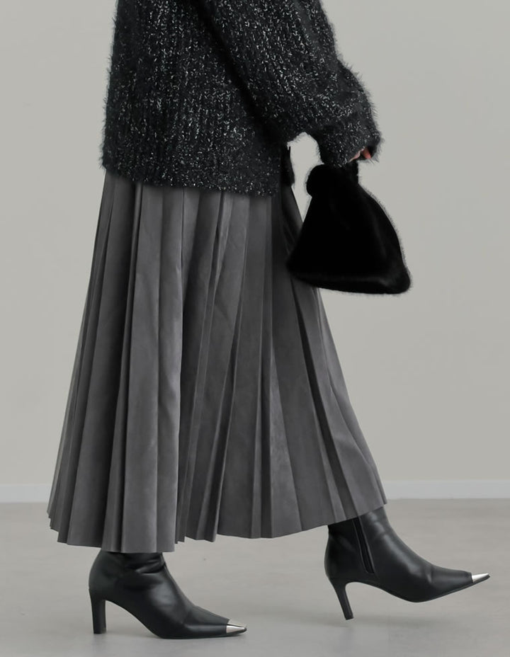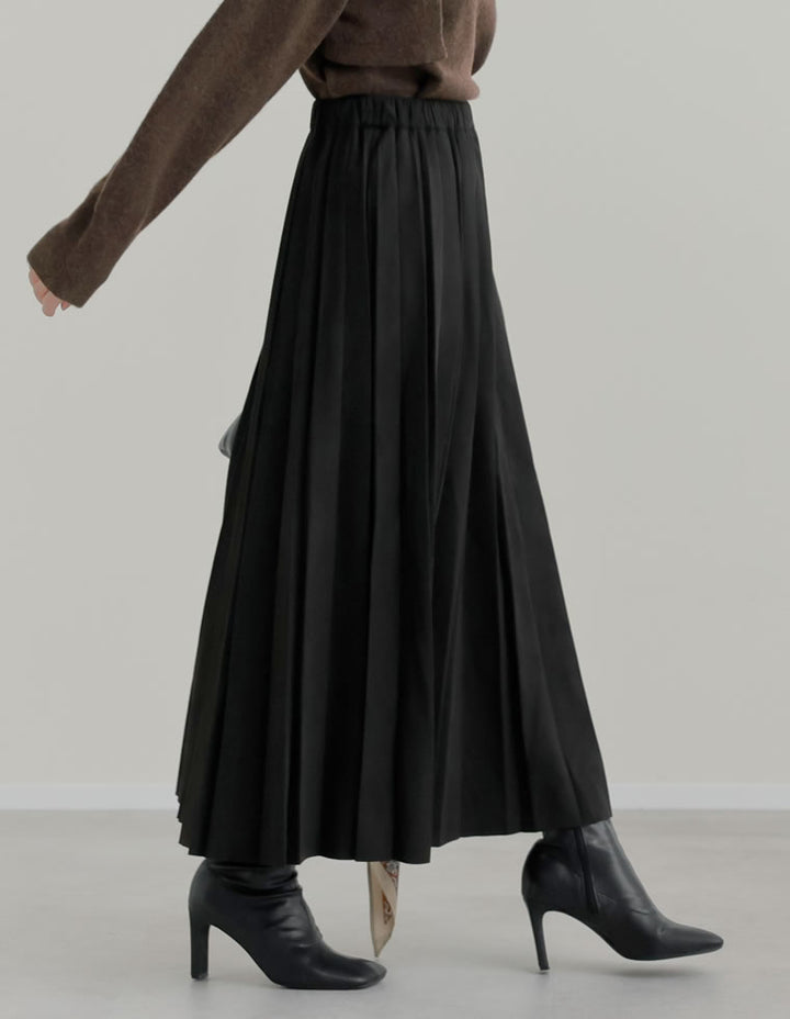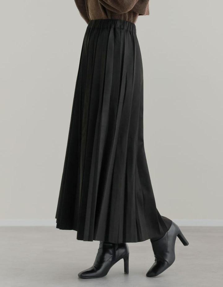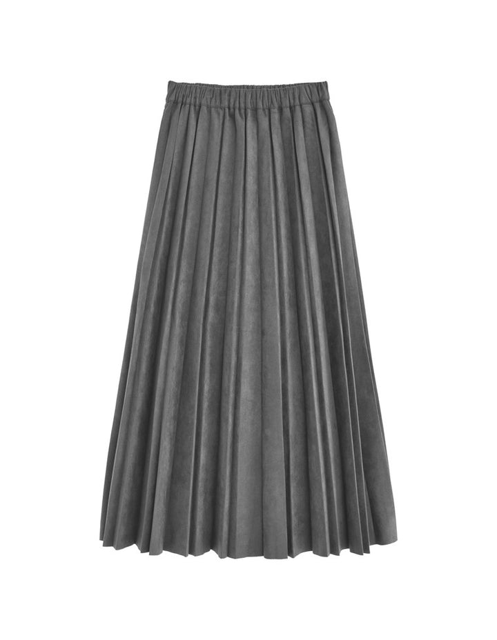 柔らかなスウェードタッチ素材で仕立てたプリーツスカート。歩くたびに揺れ、ふんわりと広がるシルエットが女性らしい雰囲気を演出します。微起毛素材ならではのあたたかみがあり、シーズンムードを高めてくれる一着。自然に広がるラインで、さりげなく体型カバーも叶います。どんなシーンにもマッチし、オフィスカジュアルからお出かけまで頼れる、大人に嬉しいスカートです。