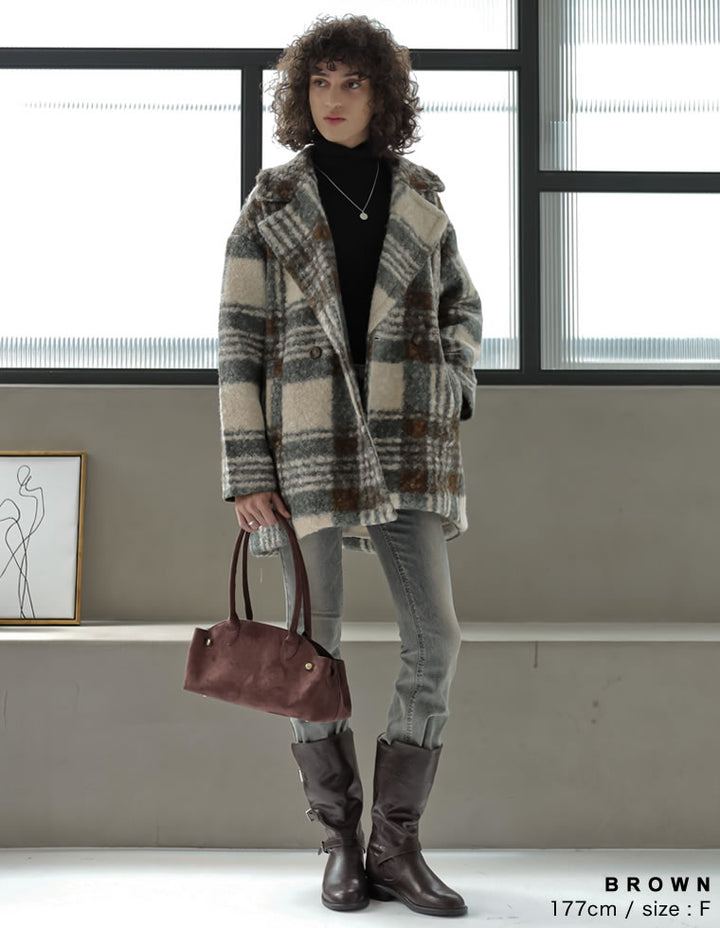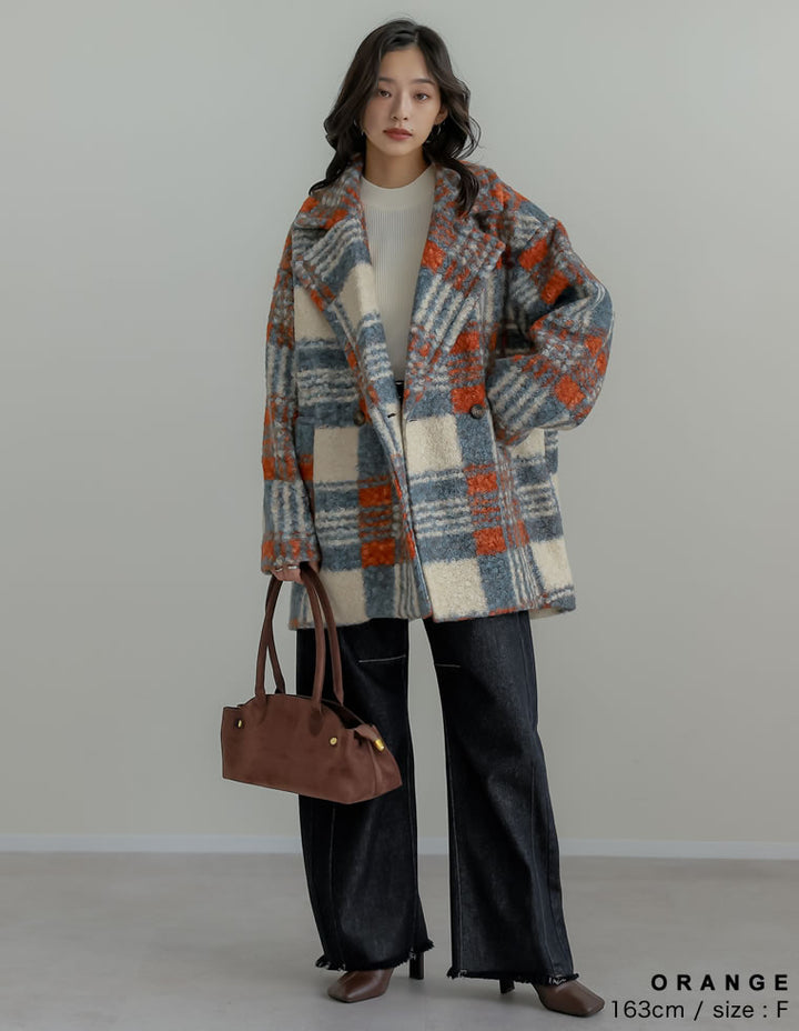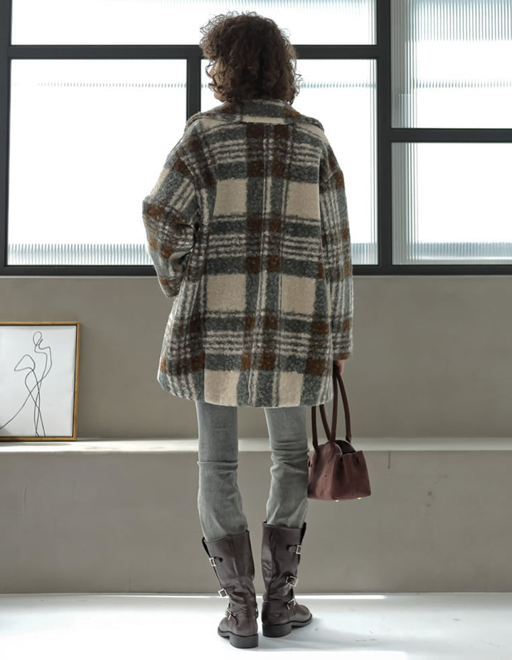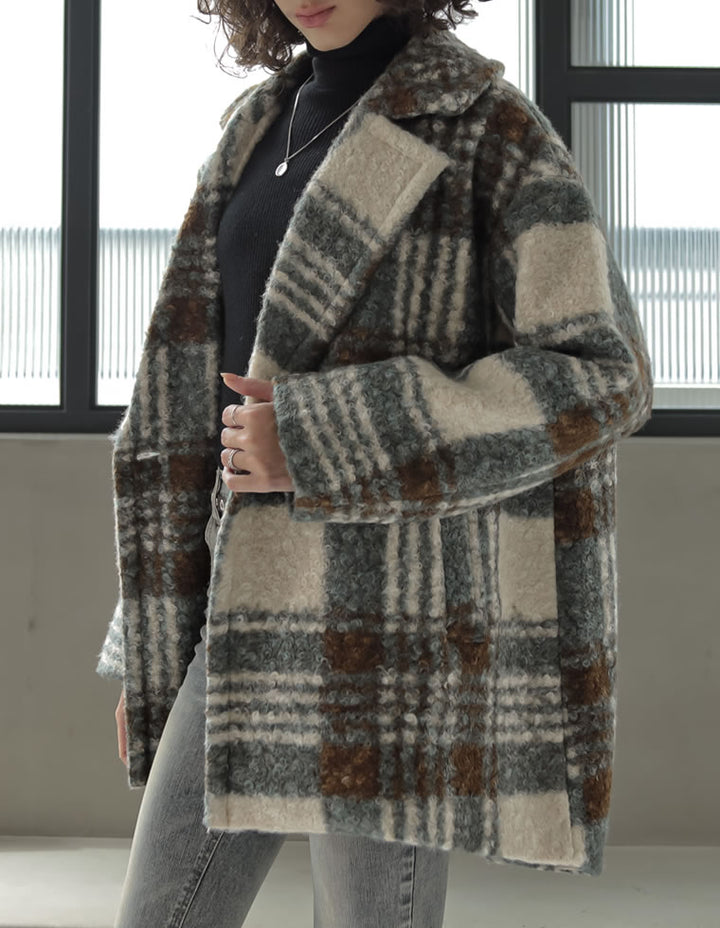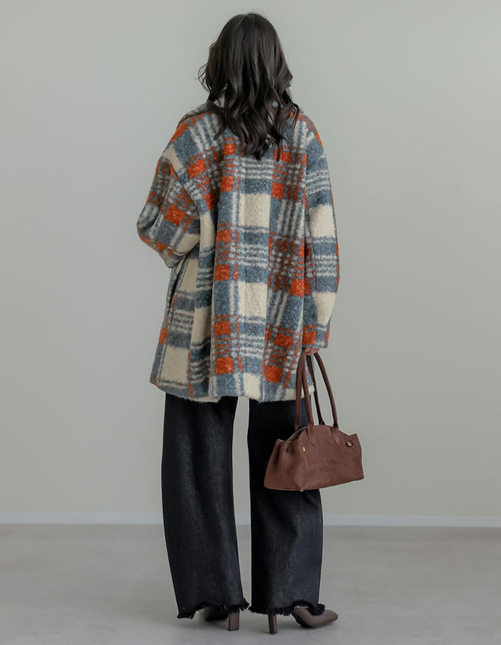 [2025 WINTER PRE ORDER]リングボア先染めチェックミドルチェスターコート