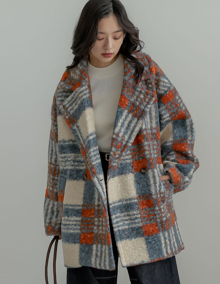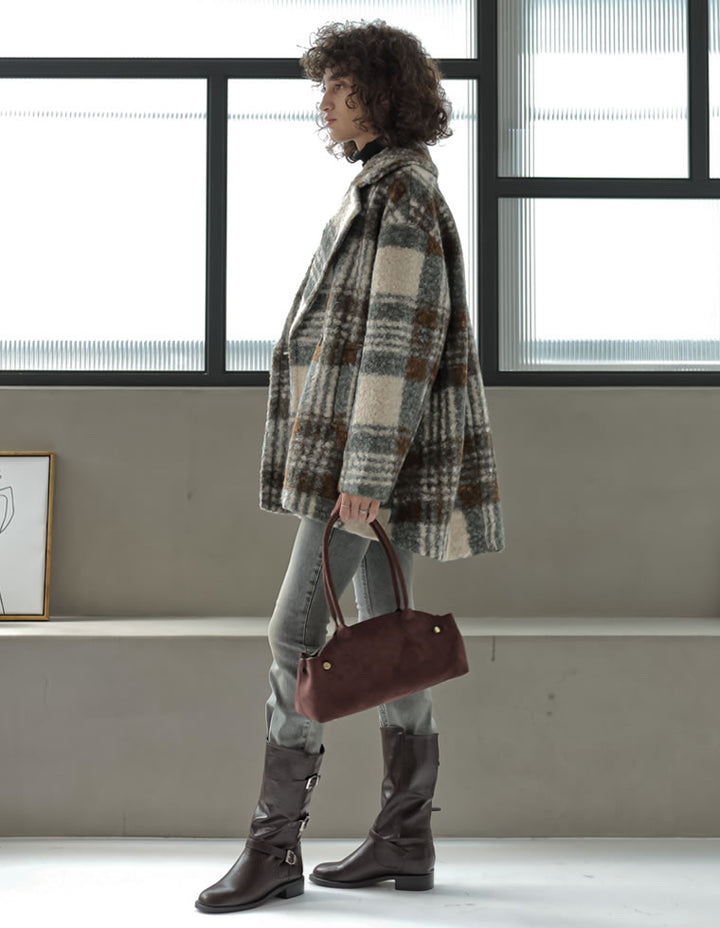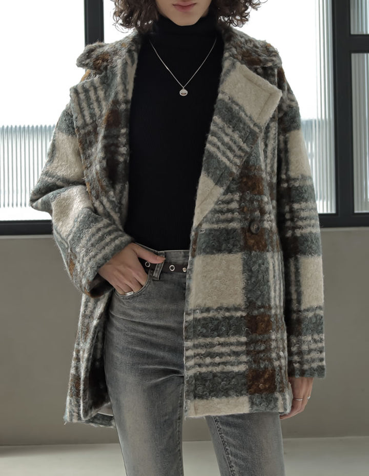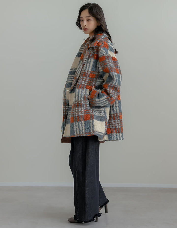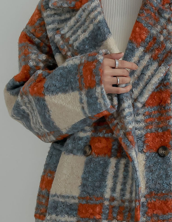 [2025 WINTER PRE ORDER]リングボア先染めチェックミドルチェスターコート
