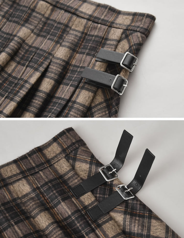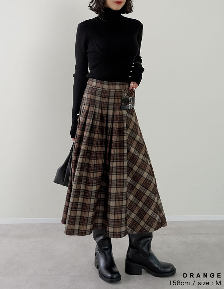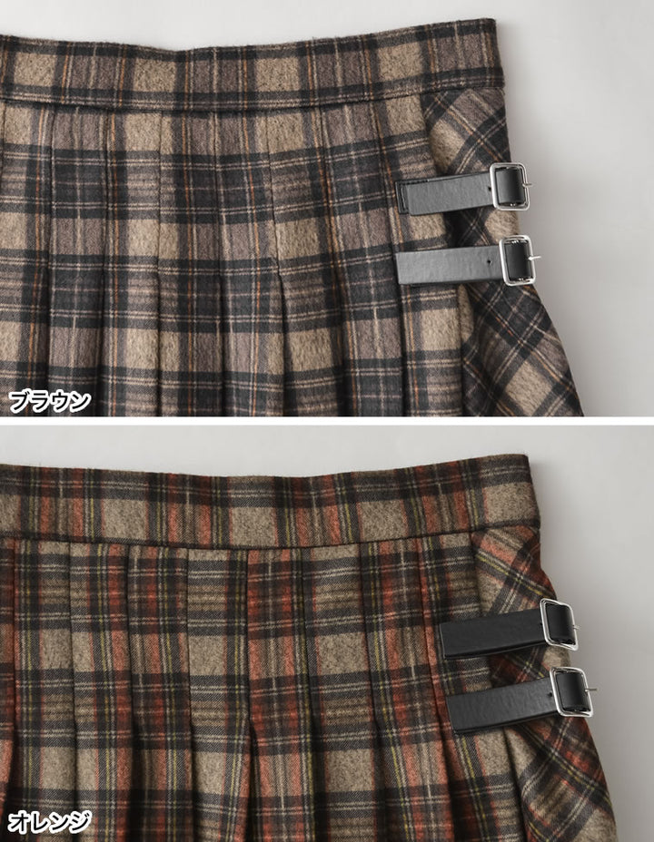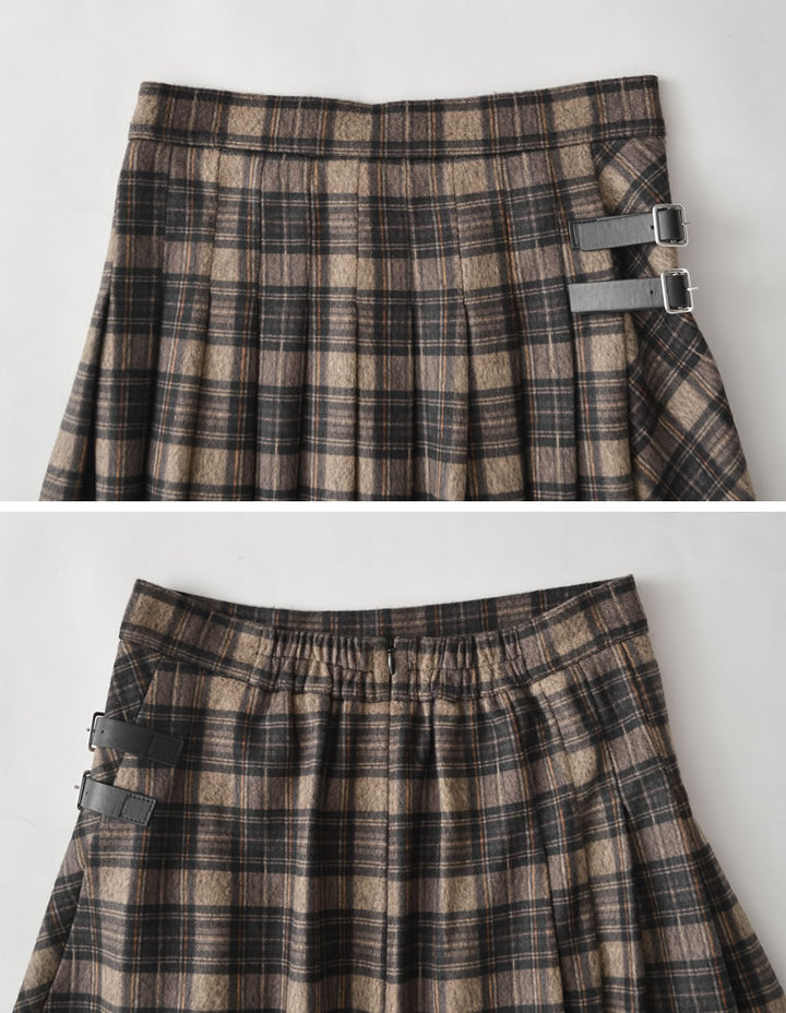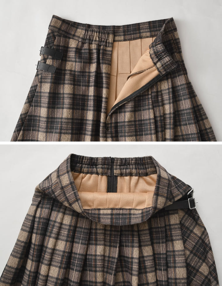 【PRE ORDER 20%OFF対象】[2025 WINTER PRE ORDER][低身長サイズ有]サイドベルトデザインチェック柄プリーツスカート