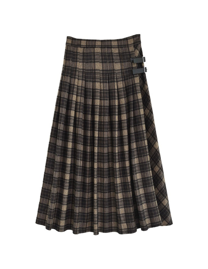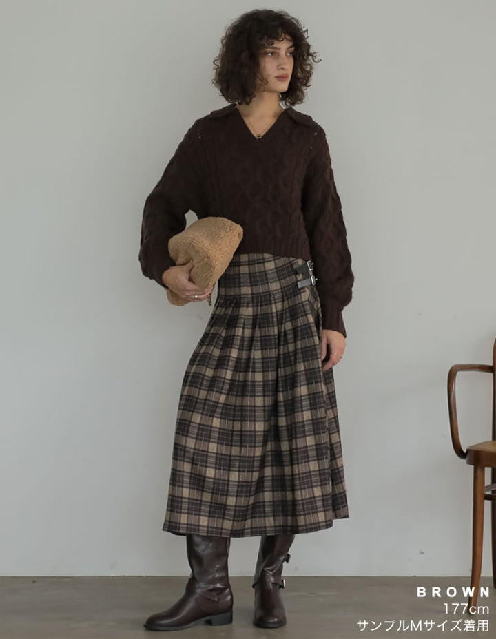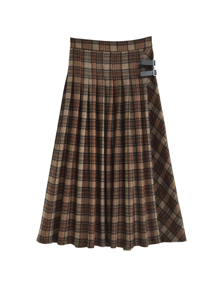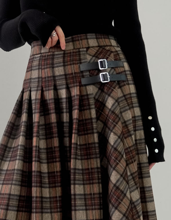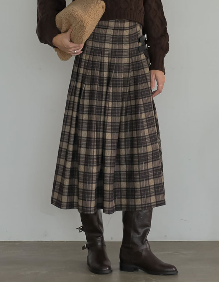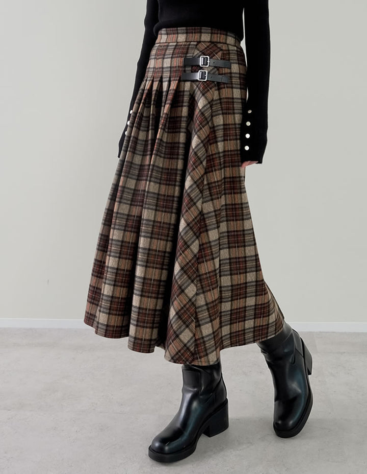 【PRE ORDER 20%OFF対象】[2025 WINTER PRE ORDER][低身長サイズ有]サイドベルトデザインチェック柄プリーツスカート