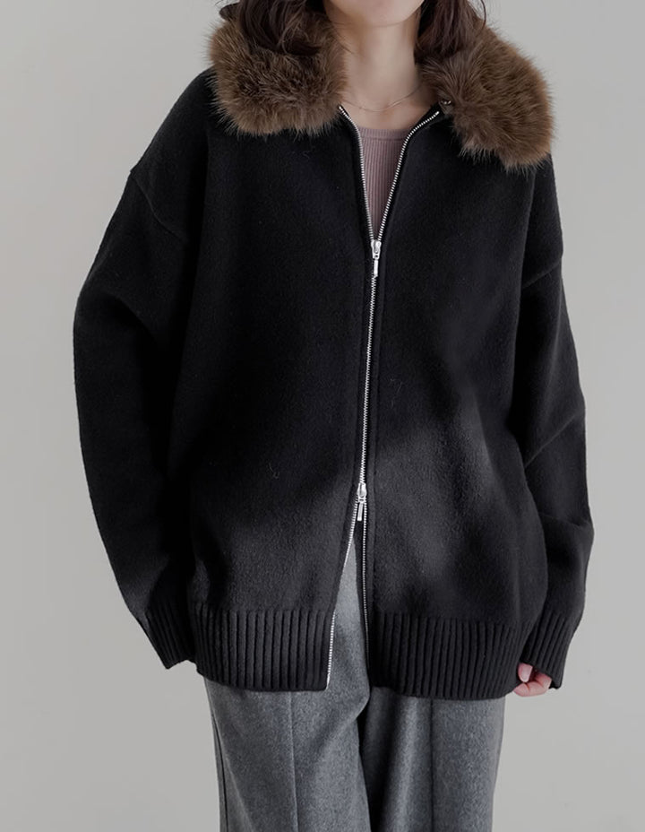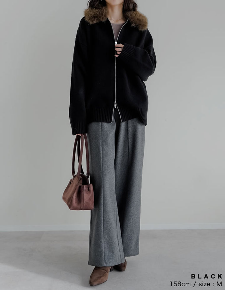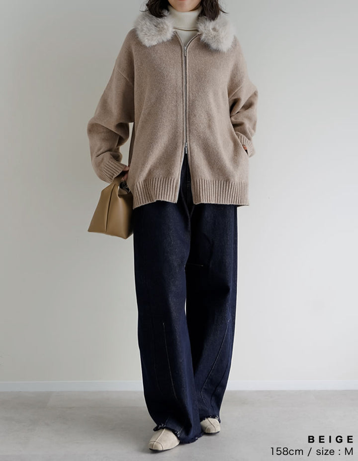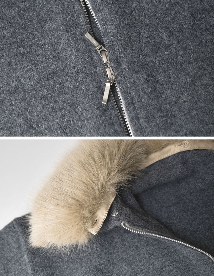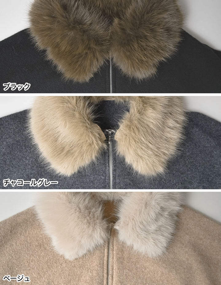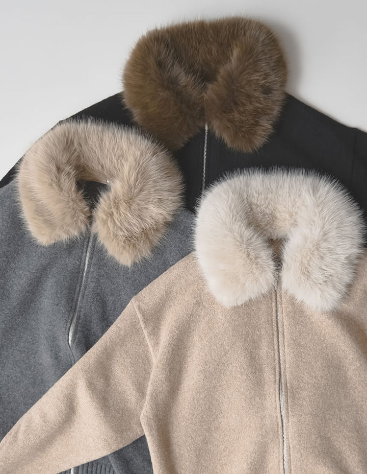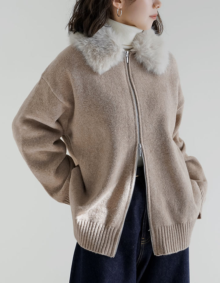 ファー襟とダブルジップを活かしたスタイリングで、オンオフ問わず幅広いシーンに対応。ポロカラーデザインは、インナーにタートルネックを合わせるだけで上品な大人カジュアルが完成します。ファー襟が華やかさを添え、特別な日のお出かけやディナーにも◎ダブルジップを上下から開けてインナーを見せたり、シルエットを調整したりと、着こなしの幅が広がります。