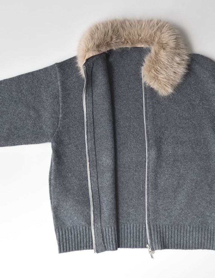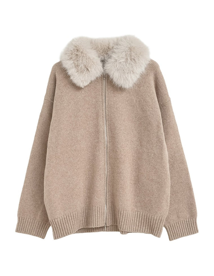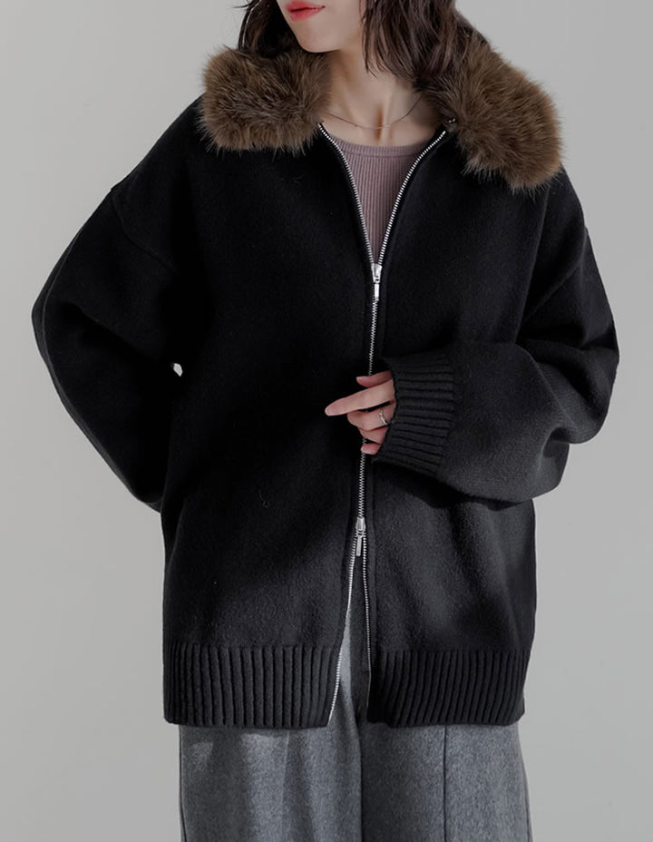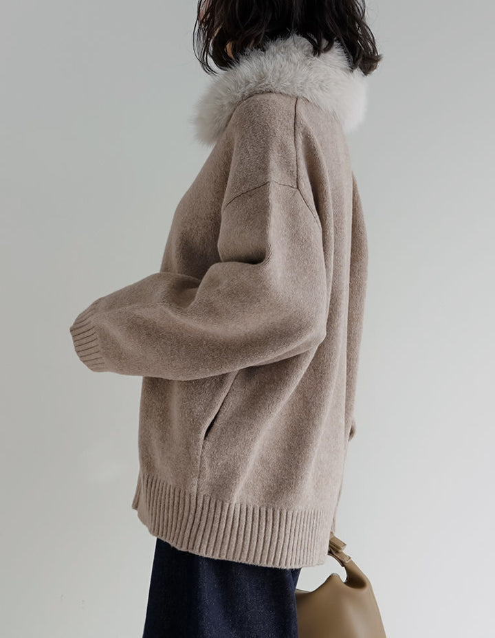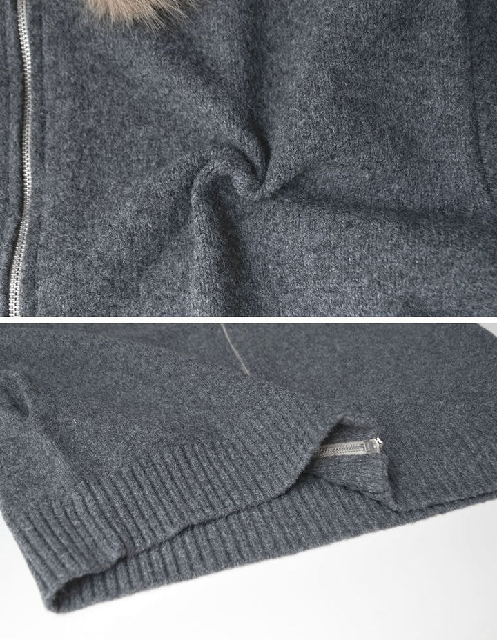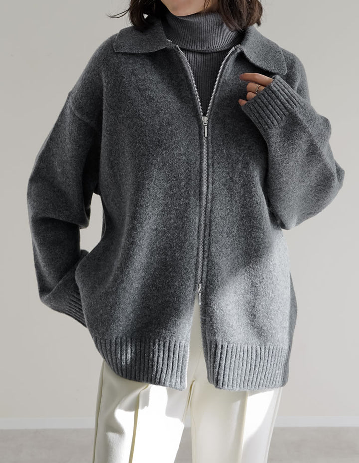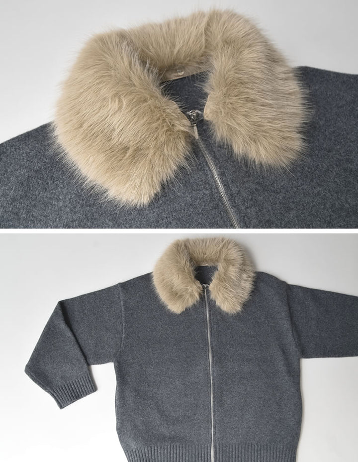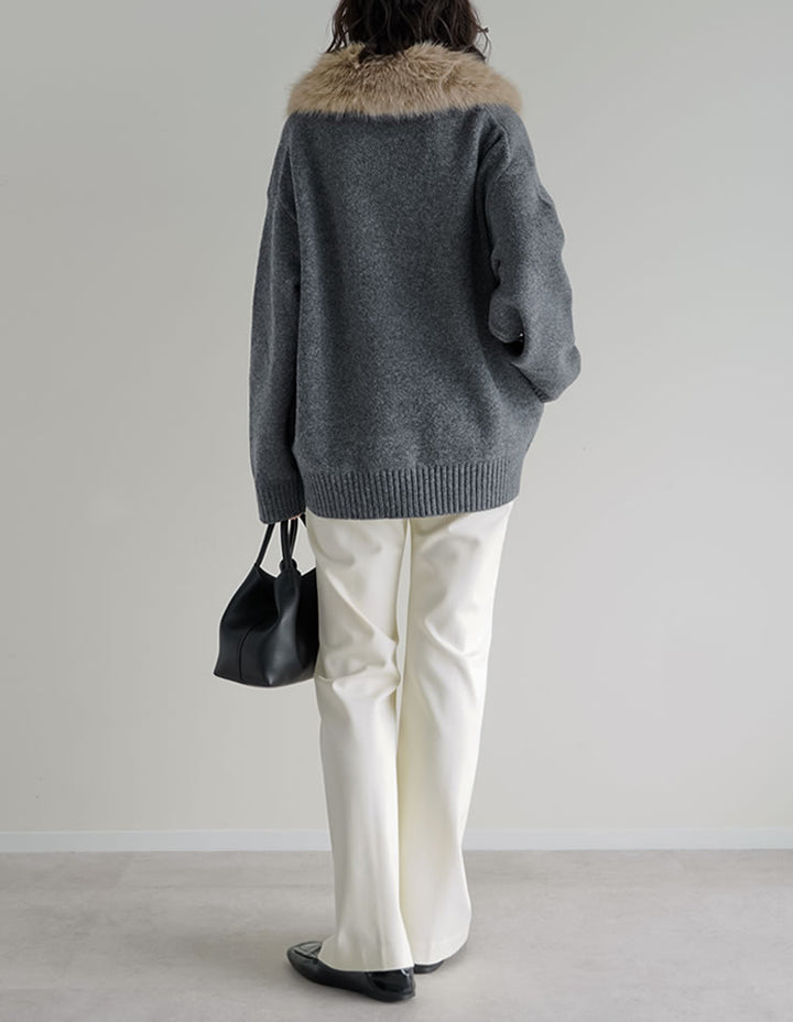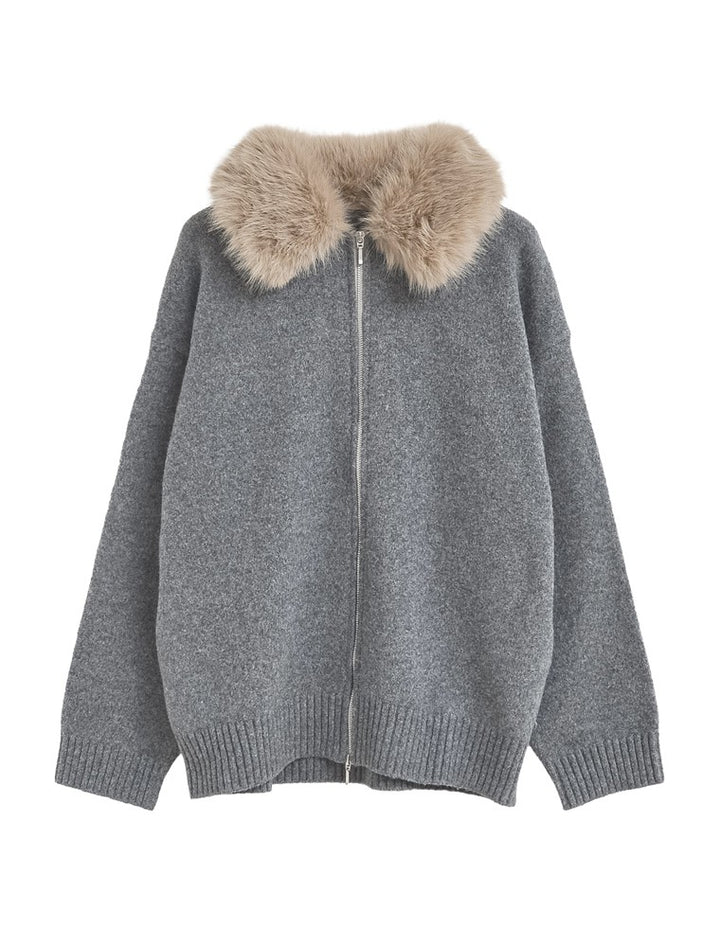 しっかりとした編地の暖かなニットを使用した、冬に重宝するダブルジップニットコート。顔周りを華やかに見せるフェイクファー襟が、スタイリングのアクセントになります。ヒップ下まで届く絶妙な丈感で、どんなボトムスともバランスよく合わせやすいのが魅力。襟はポロカラーデザインを採用しており、カジュアルにもきれいめにも対応できます。ダブルジップ仕様なので、ジップの開閉具合でシルエットにアレンジを加えられるのもポイント。襟のファーは取り外し可能で、シンプルなポロカラーとしても着用可能。冬らしい旬のムードを纏い、コーディネートの主役になるアイテムです。