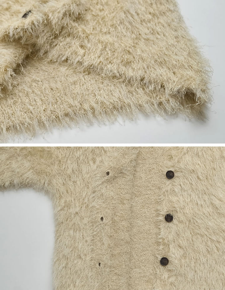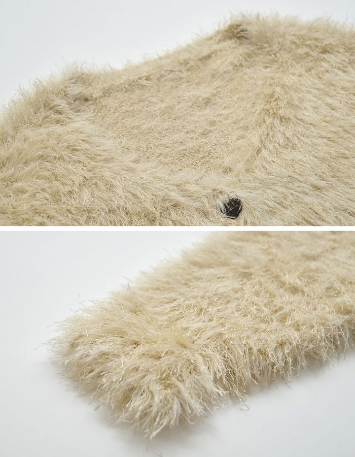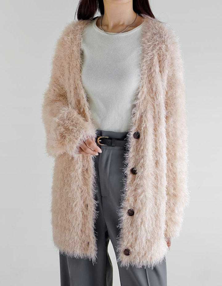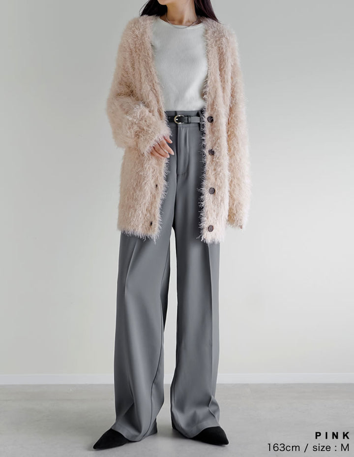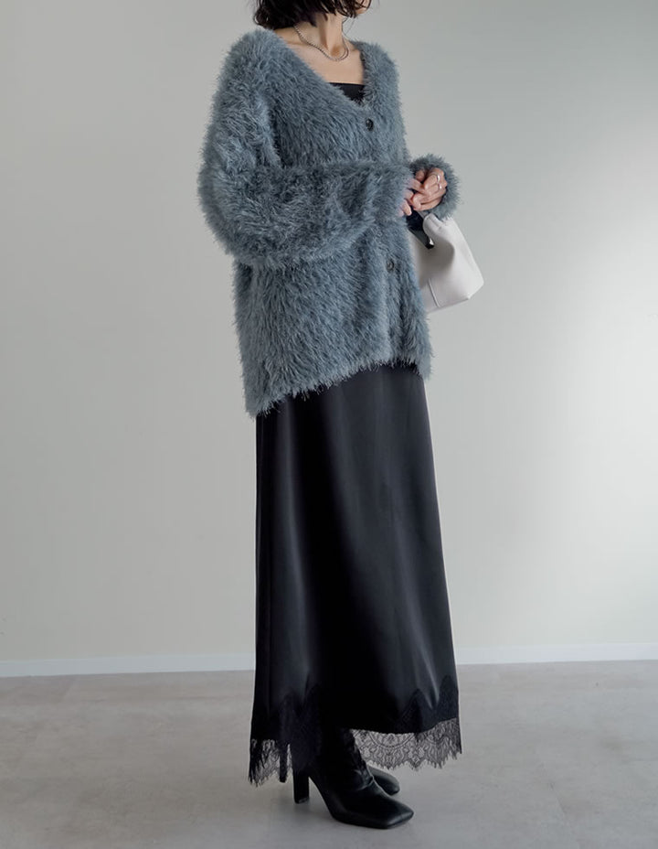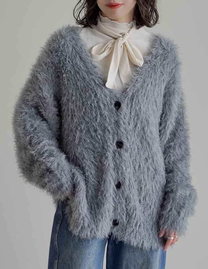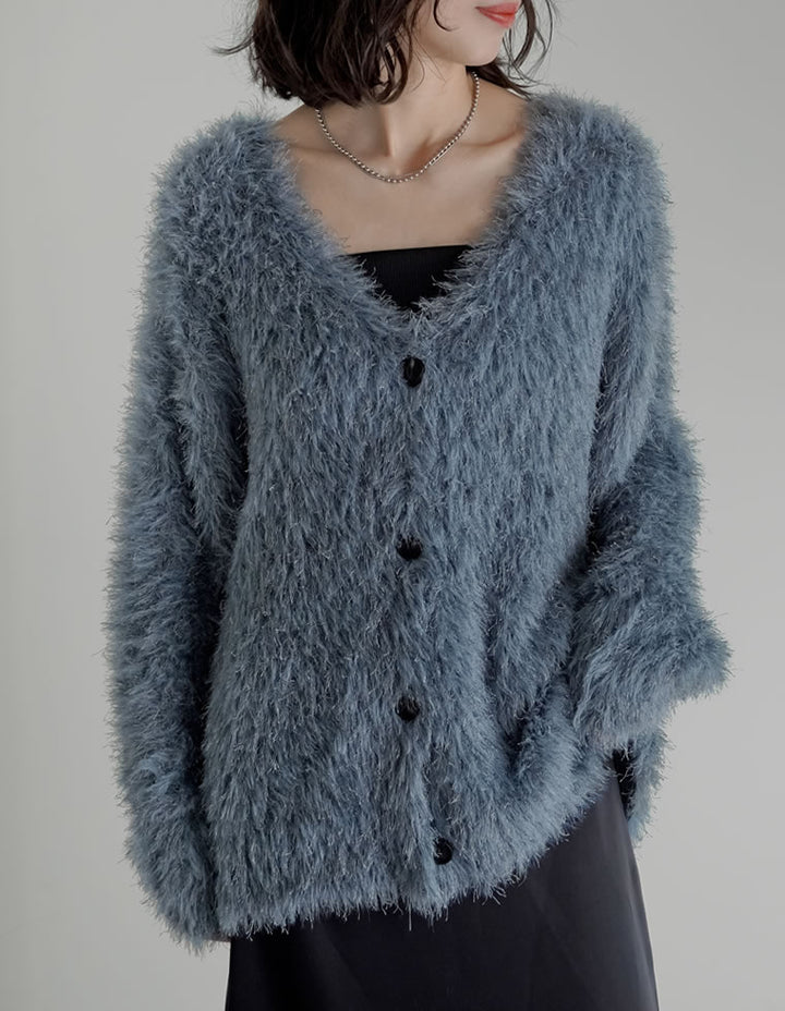 ホリデーシーズンにぴったりの、柔らかなフェザーニットカーディガンが登場。毛足が長く、ぱっと目を引くカラーリングで表情豊かな1着です。繊細なフェザーヤーンをブレンドし、ふわふわとした柔らかな質感を実現。羽織るだけで、一気に華やかなムードを演出します。顔周りをすっきりと見せるシンプルなVネックデザインは、インナーを選ばず着回しやすさ抜群。ヒップ中間あたりまでのミドル丈で、体型カバーが叶い、どんなボトムスともバランスよくマッチ。見た目以上に幅広いボトムと相性が良く、1枚でコーディネートの主役になる旬のニットカーディガンです。