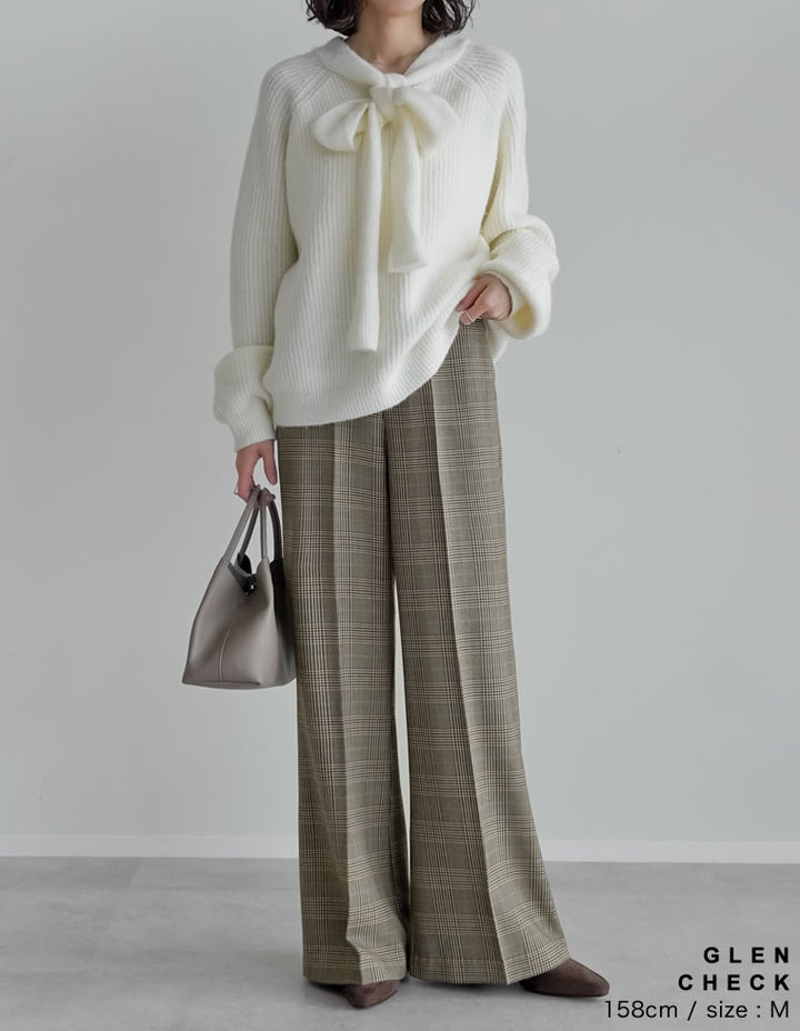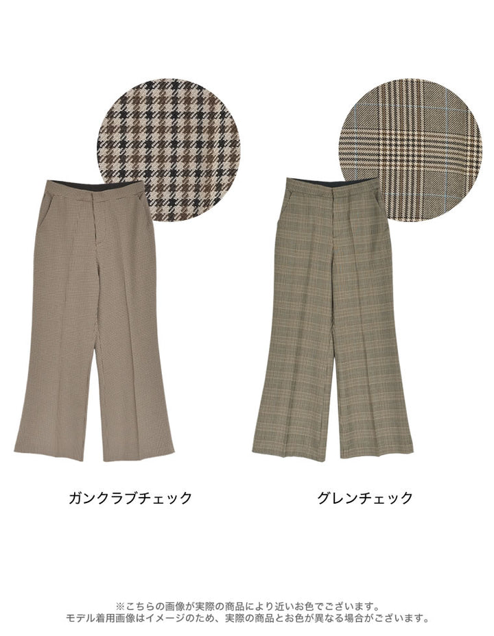 [低身長/高身長サイズ有]チェック柄内ゴムキックフレアパンツ