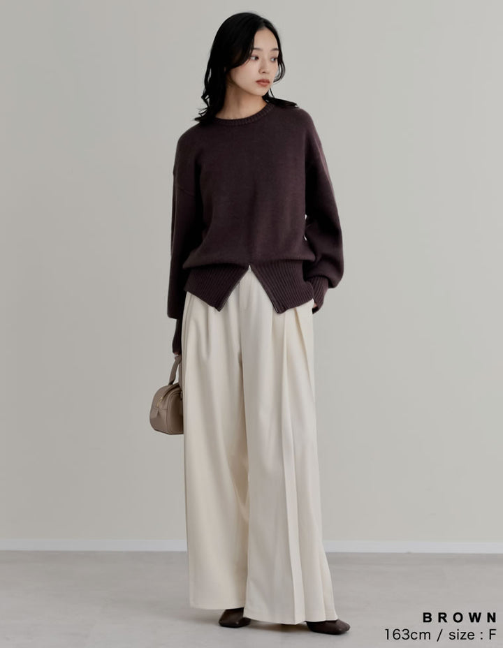 裾や袖にたぷんとたまる、今っぽいシルエットが魅力で、コーデの主役に。