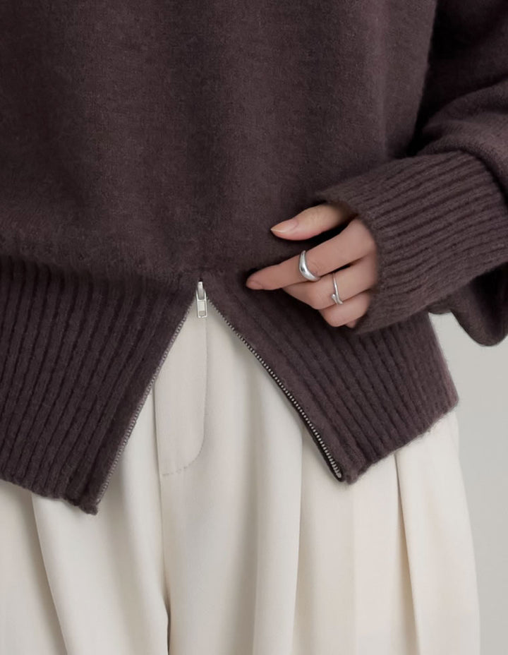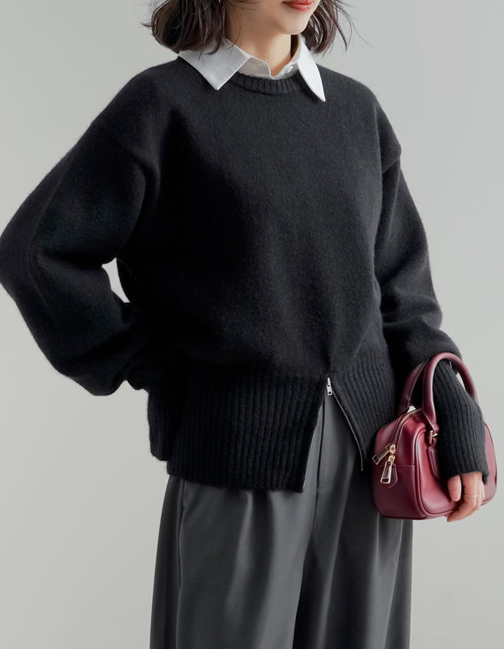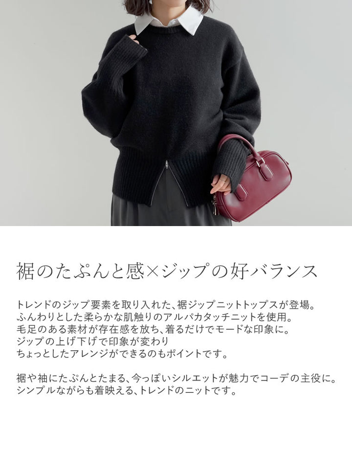 トレンドのジップ要素を取り入れた、裾ジップニットトップスが登場。