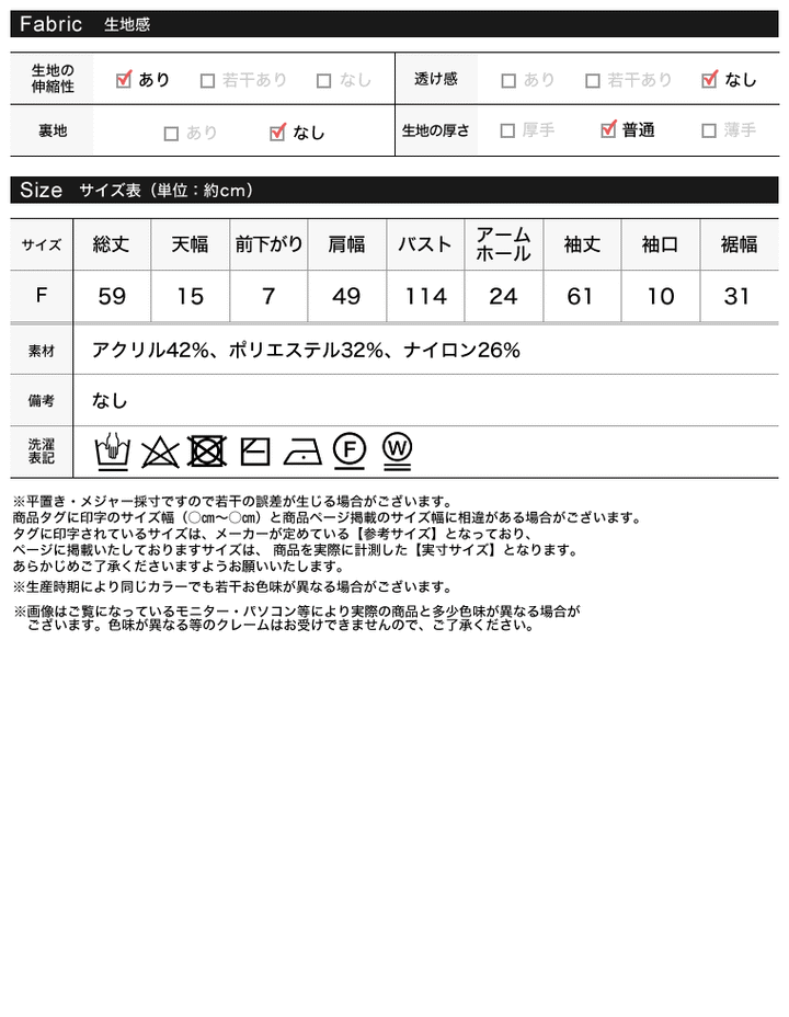 ※シルエットをくずさないために、保管の際はハンガーを使用せず、たたみ保管にしてください。
