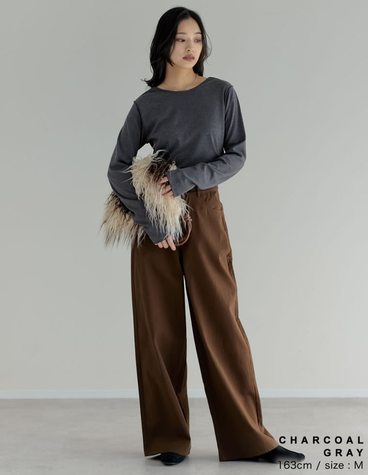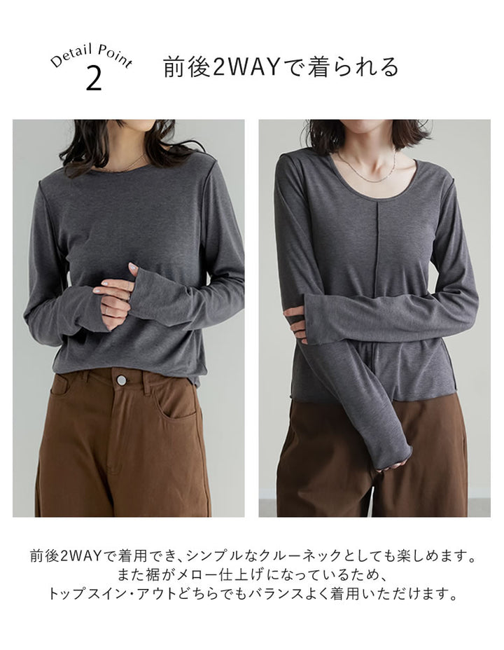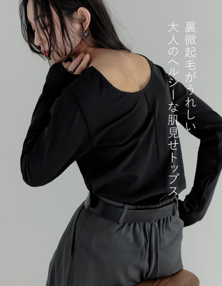 [大きいサイズ有][前後2WAY]裏微起毛バックオープントップス