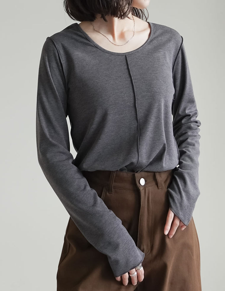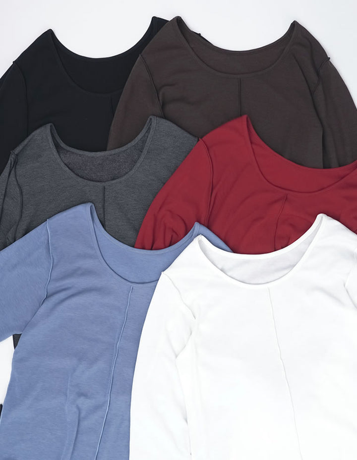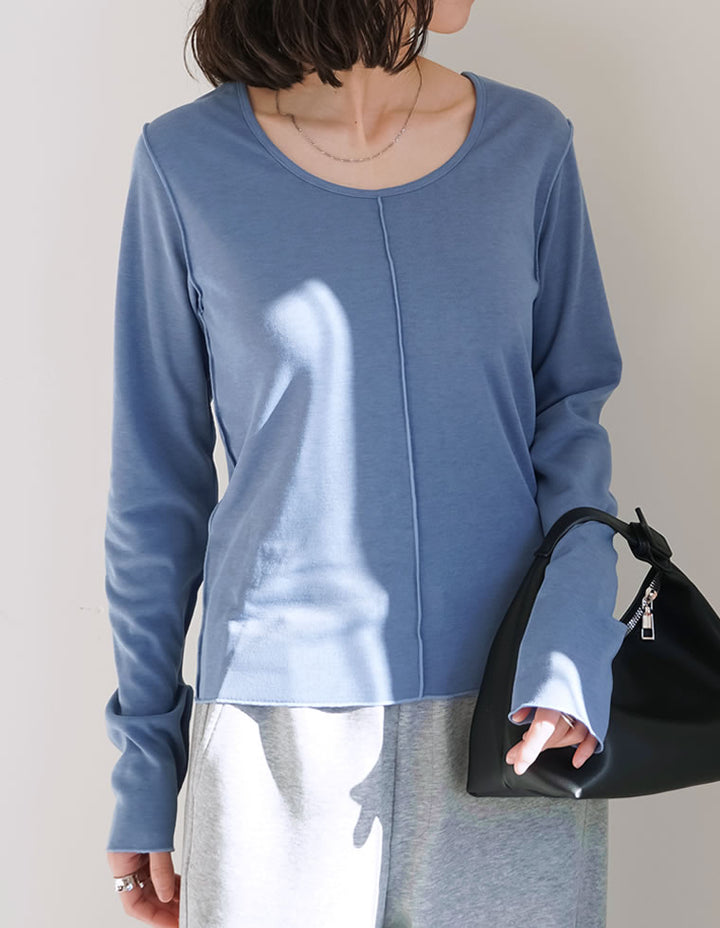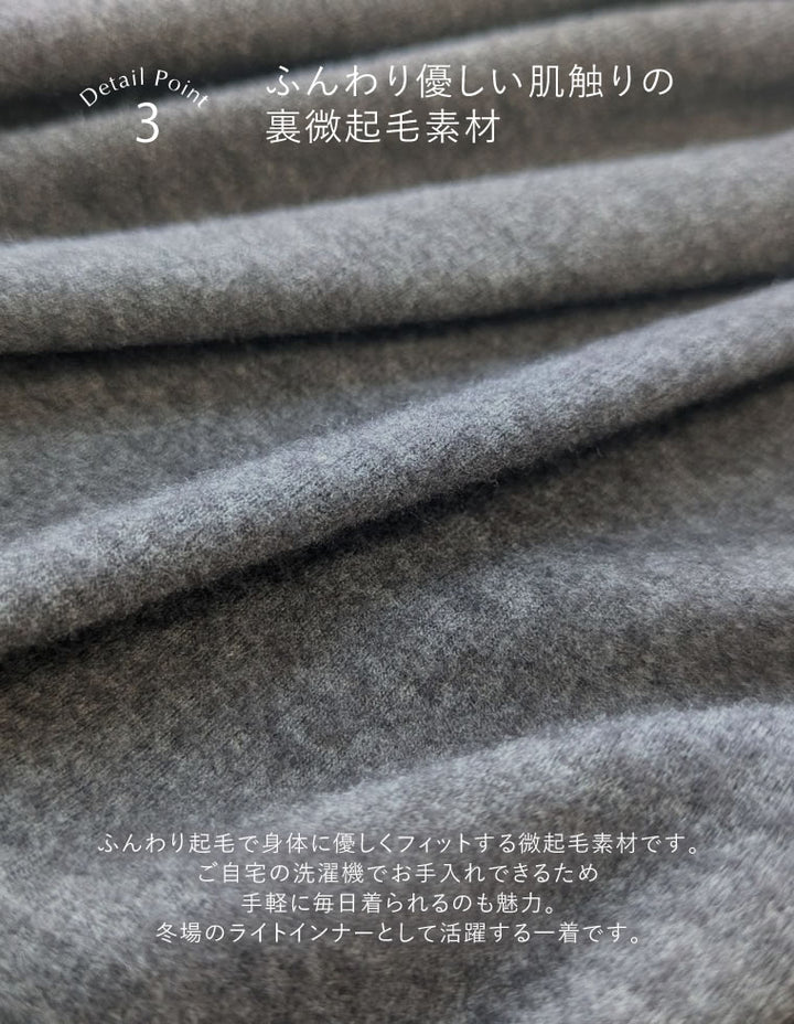 内側ふんわり起毛で暖かい、裏微起毛カットソーが新登場。冬場のライトインナーとして活躍する、頼れる長袖トップスです。デイリーに着回せるベーシックなシルエットに、旬のカラーバリエーションを揃えました。キャミソールが見えないくらいのちょうど良いバックオープンデザインにこだわり、品よく抜け感のある仕上がりに。ハギデザインで後ろ姿も抜かりなく、洒落感たっぷりに着こなせます。ご自宅の洗濯機でお手入れできるため、手軽に毎日着られるのも魅力。前後2WAYで着用でき、シンプルなクルーネックとしても楽しめます。インナーとしてはもちろん、アウターとのレイヤードスタイルにも活躍する一着です。